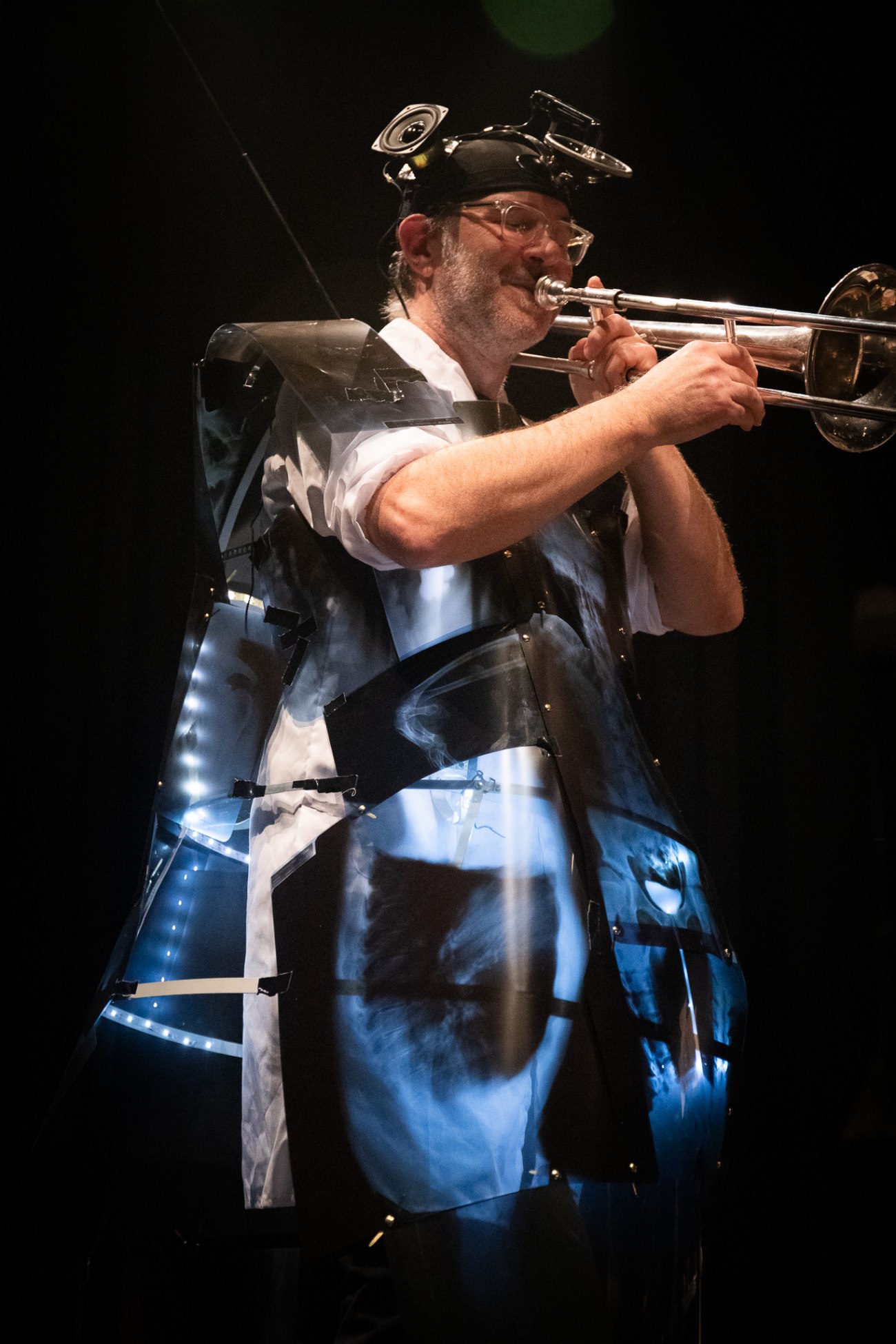 The project was in residence at 104 Paris in early March. The artists were able to continue working on their costumes as “second skins,” all within a musical universe of revelrous noise. Get a sneak peek at the costumes currently in production!